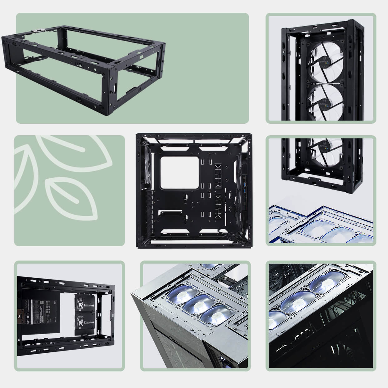 Air Cooling Fans: Front : 3 x 120 / 140 mm (3 x AJ140 pre-installed) Top: 3 x 120 / 140 mm Rear: 1 x 120 / 140 mm (1 x AJ140 pre-installed) Water Cooling Radiator: Front : 1 x 360 / 420 mm Top : 1 x 360 / 420 mm |