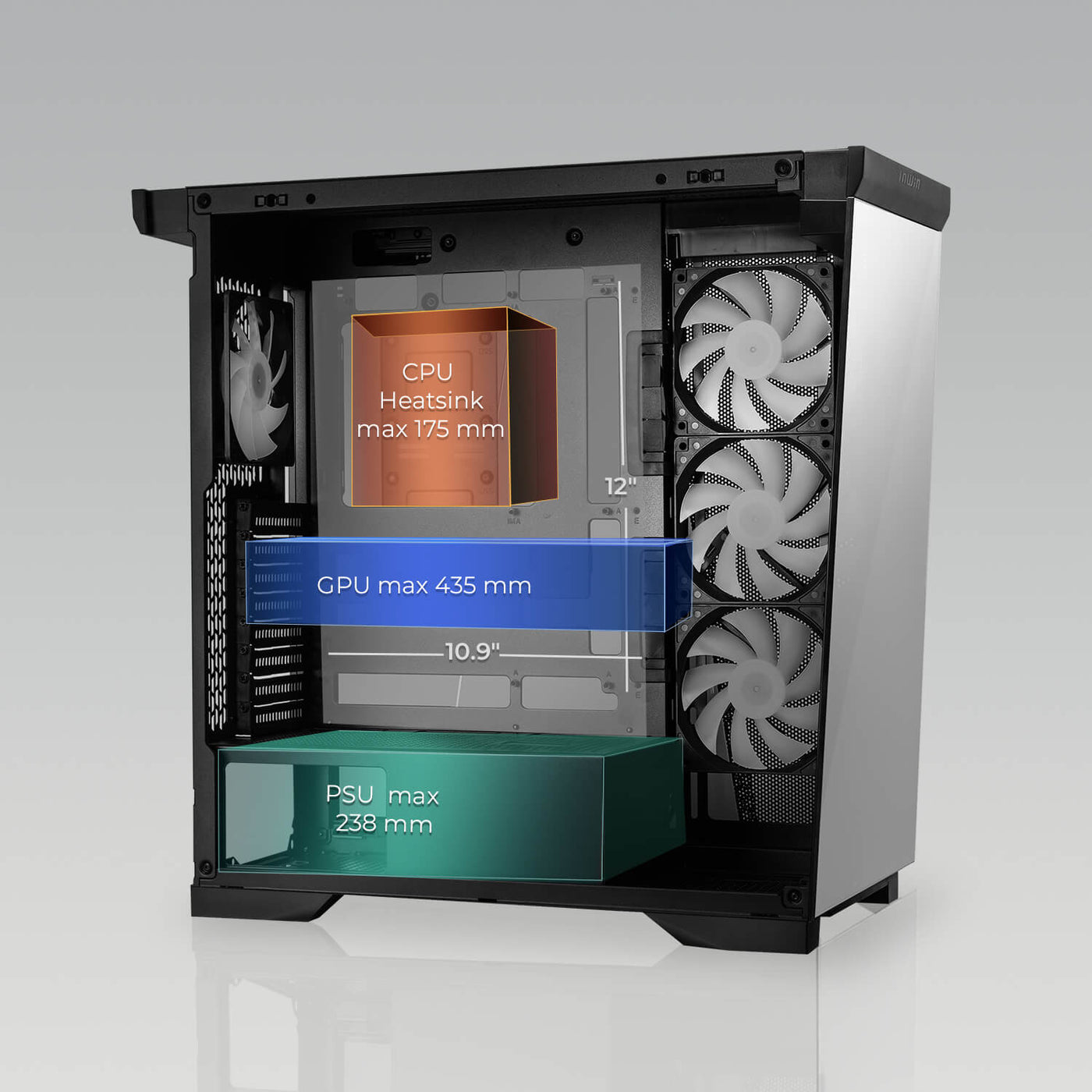 | Maximum Compatibility | GPU Length: 435 mm CPU Heatsink Height: 175 mm |